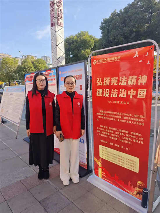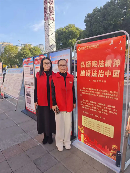 2025年11月30日,在第十二个国家宪法日来临之际,安徽天太律师事务所积极行动起来,开展了一场精彩纷呈的“弘扬宪法精神 传播法治文化”的宪法宣传活动。